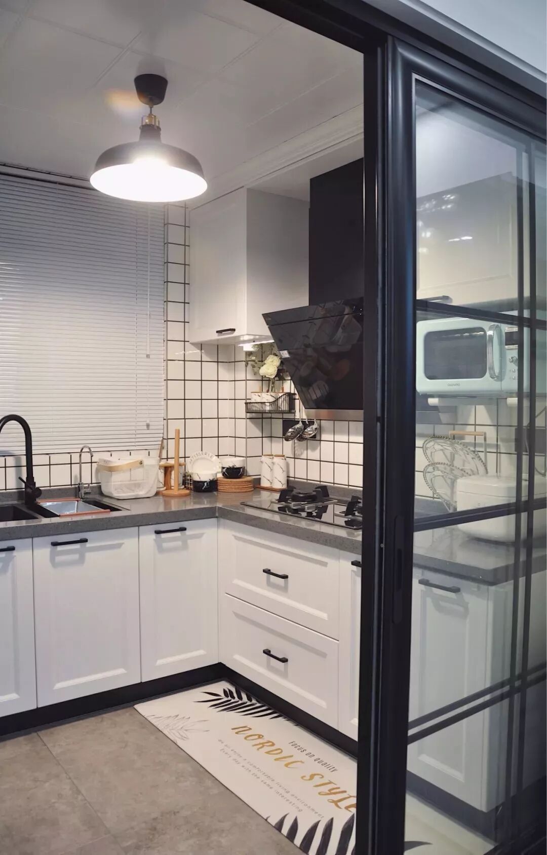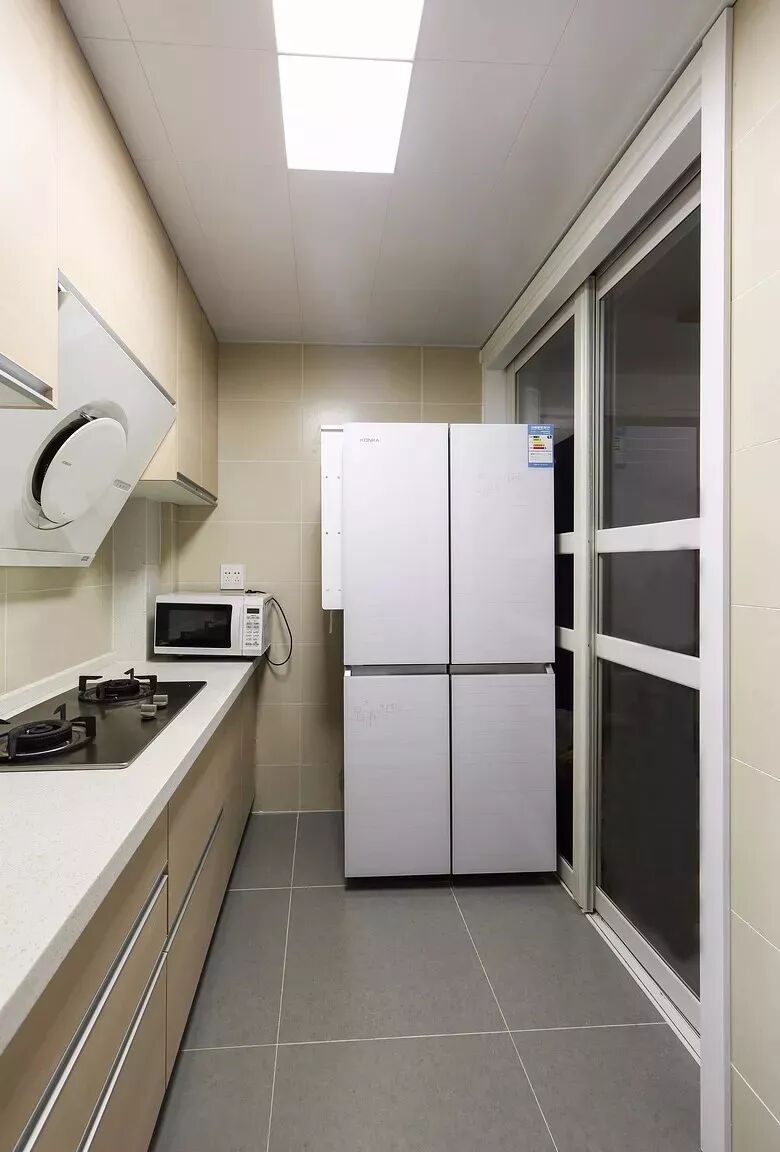 白色相比黑色推拉门,使厨房看起来更清爽明亮。